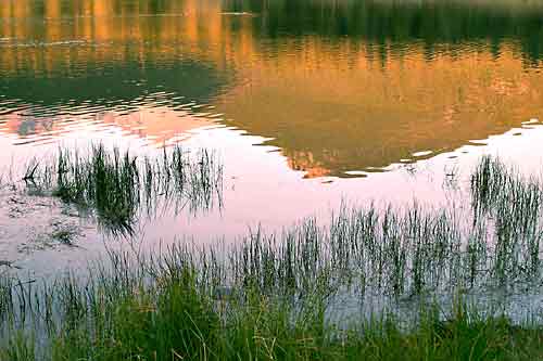 Absence of wind In early morning and late afternoon turns the lakes into mirrors.